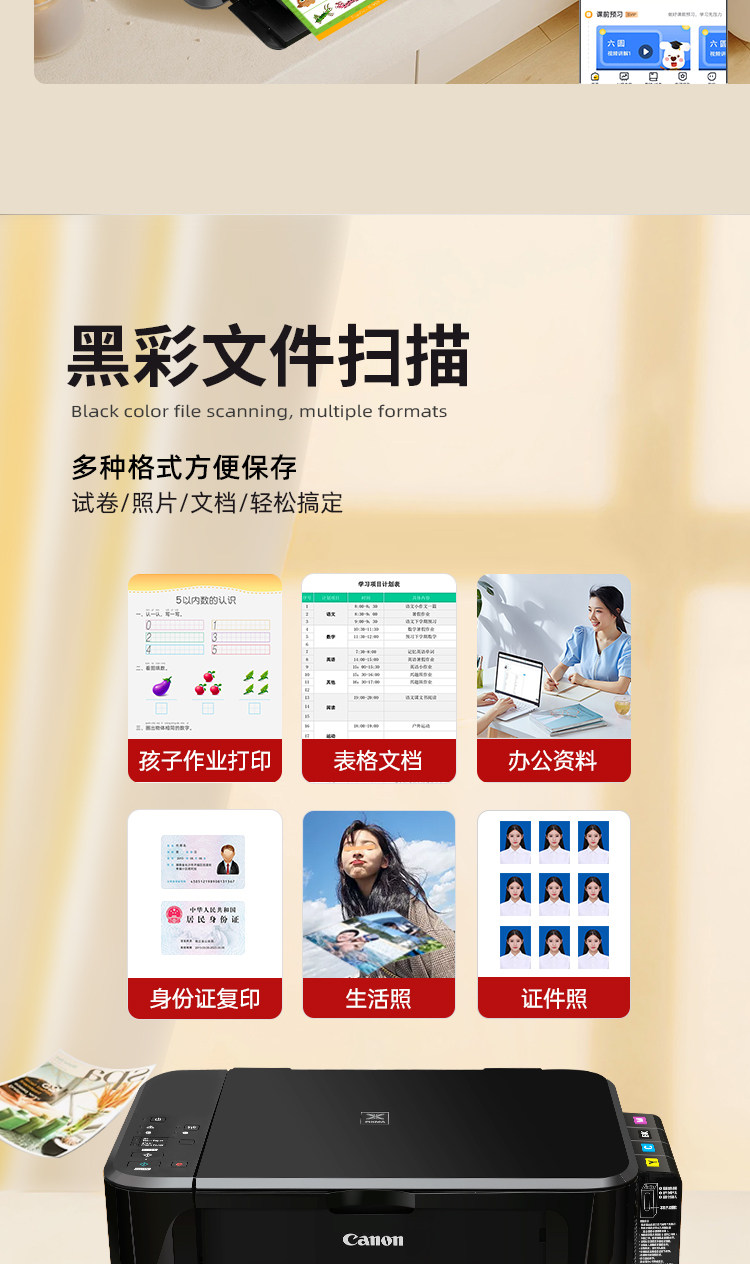 • 佳能3620彩色打印机家用小型复印扫描一体机手机无线照片喷墨墨仓