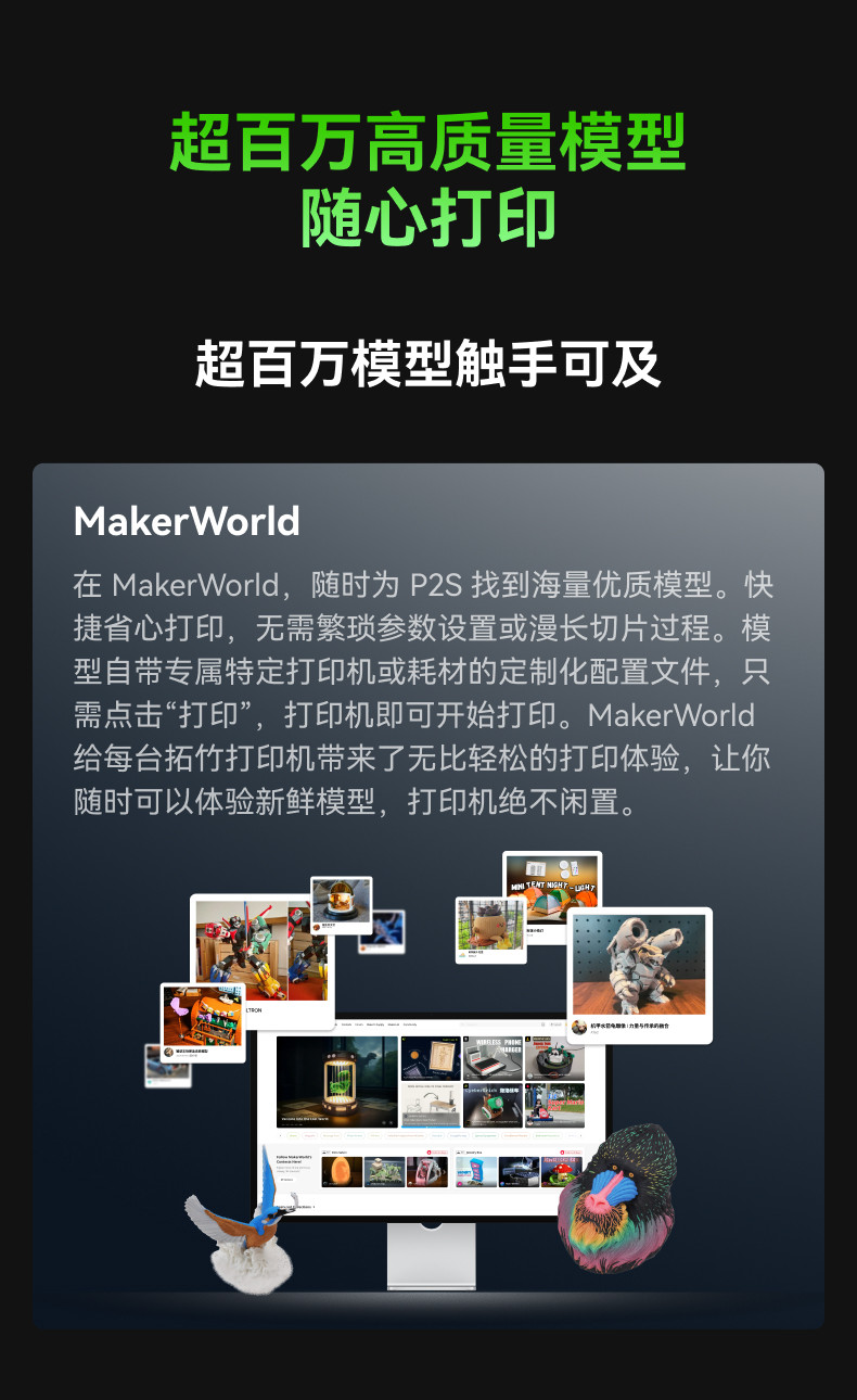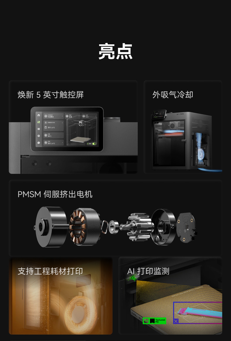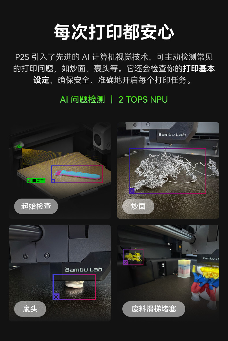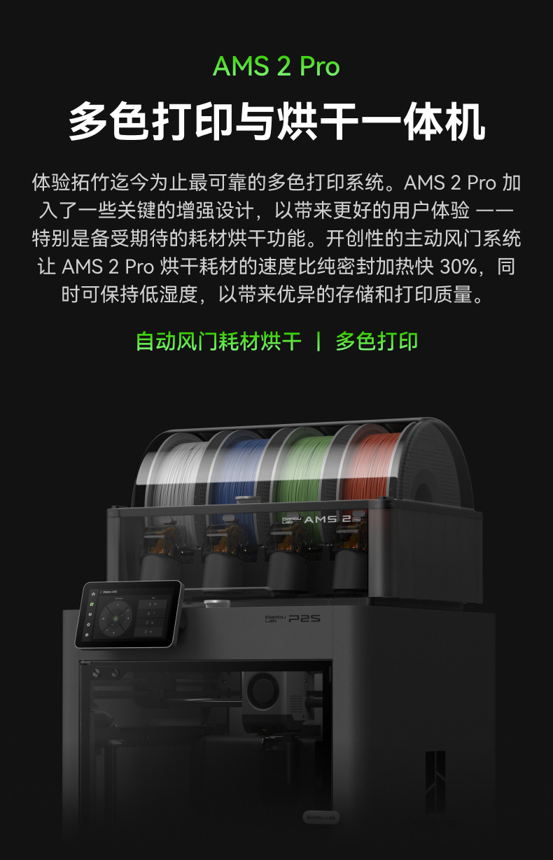 首页 > 打印机 > 拓竹P2S 3D打印机器大尺寸FDM家用自动桌面多色立体高精度高速AI监测烘干P1S升级