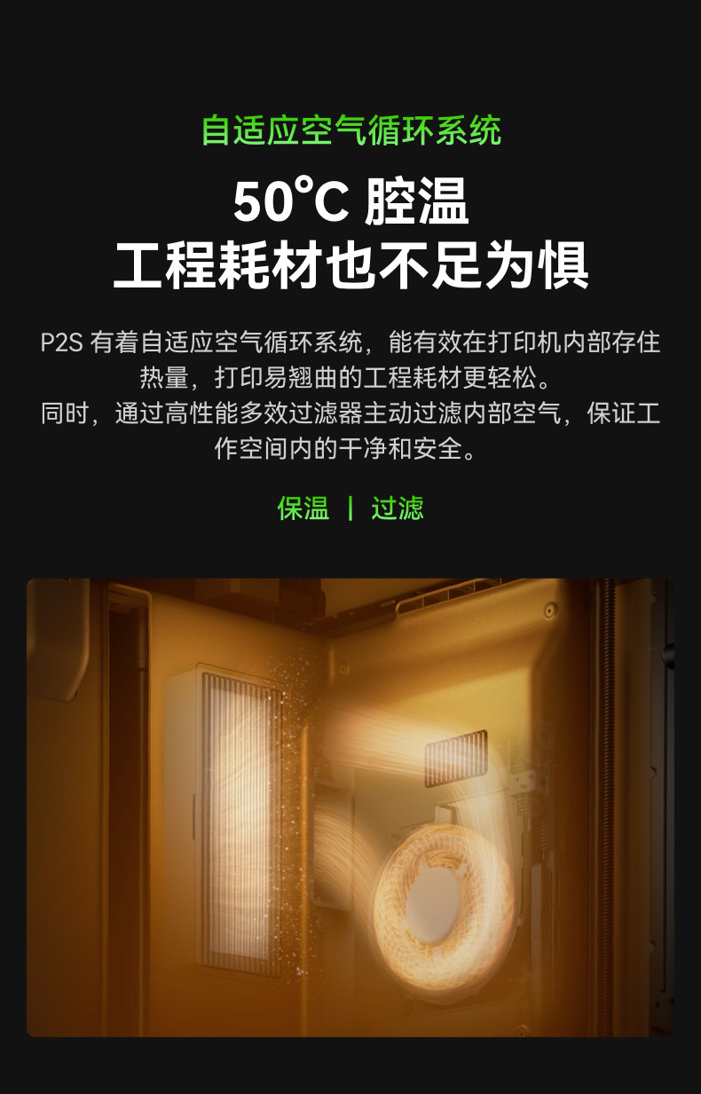 • 拓竹P2S 3D打印机器大尺寸FDM家用自动桌面多色立体高精度高速AI监测烘干P1S升级