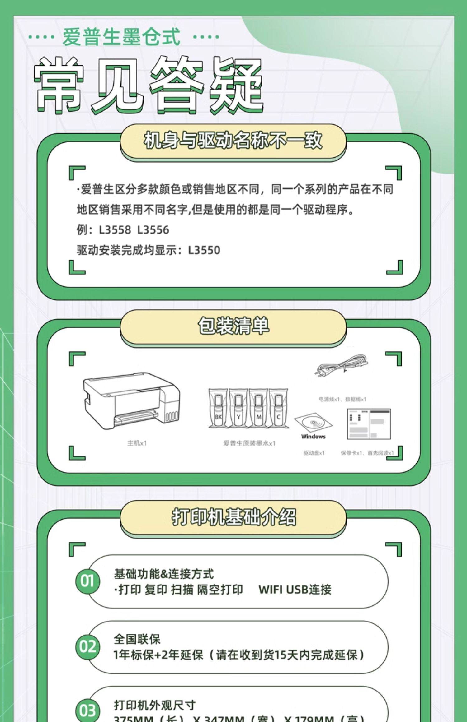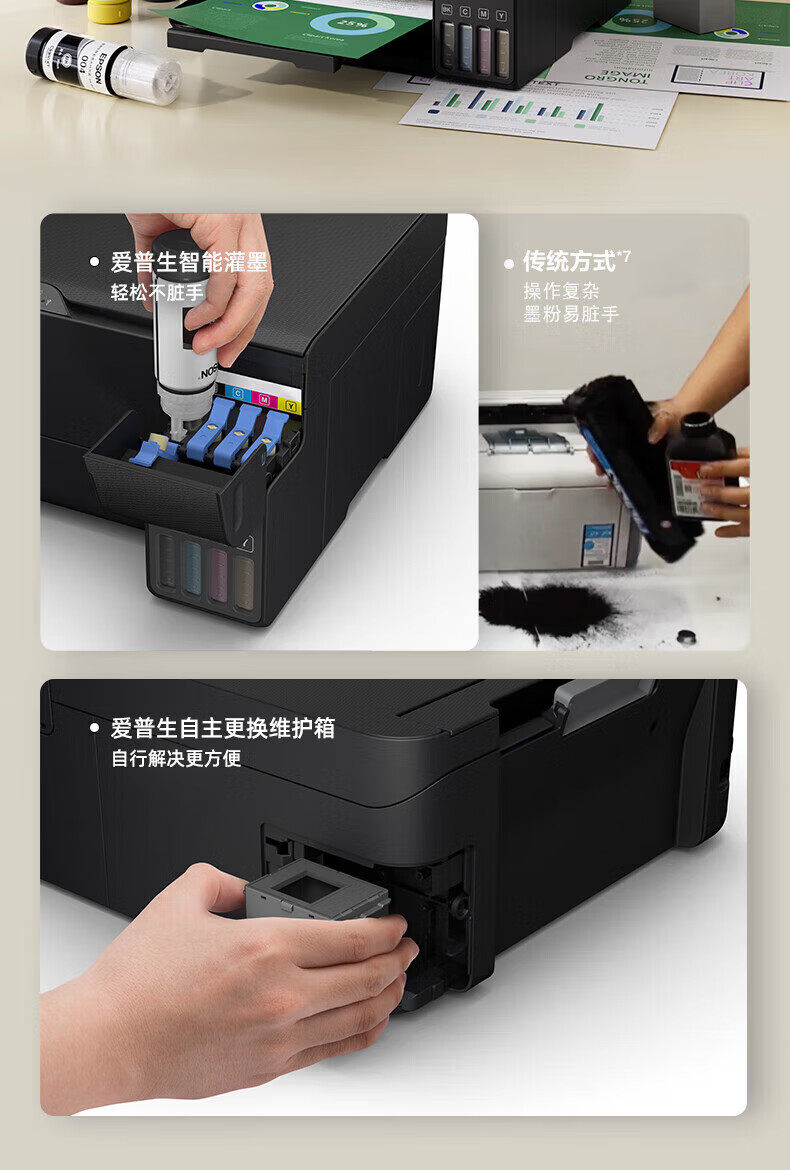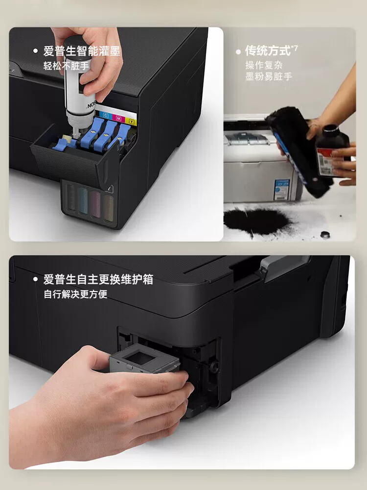 • 爱普生L3558/L3556彩色墨仓式一体机复印扫描无线家用办公打印机