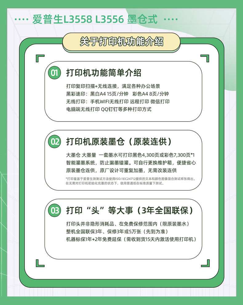 首页 > 打印机 > 爱普生L3558/L3556彩色墨仓式一体机复印扫描无线家用办公打印机