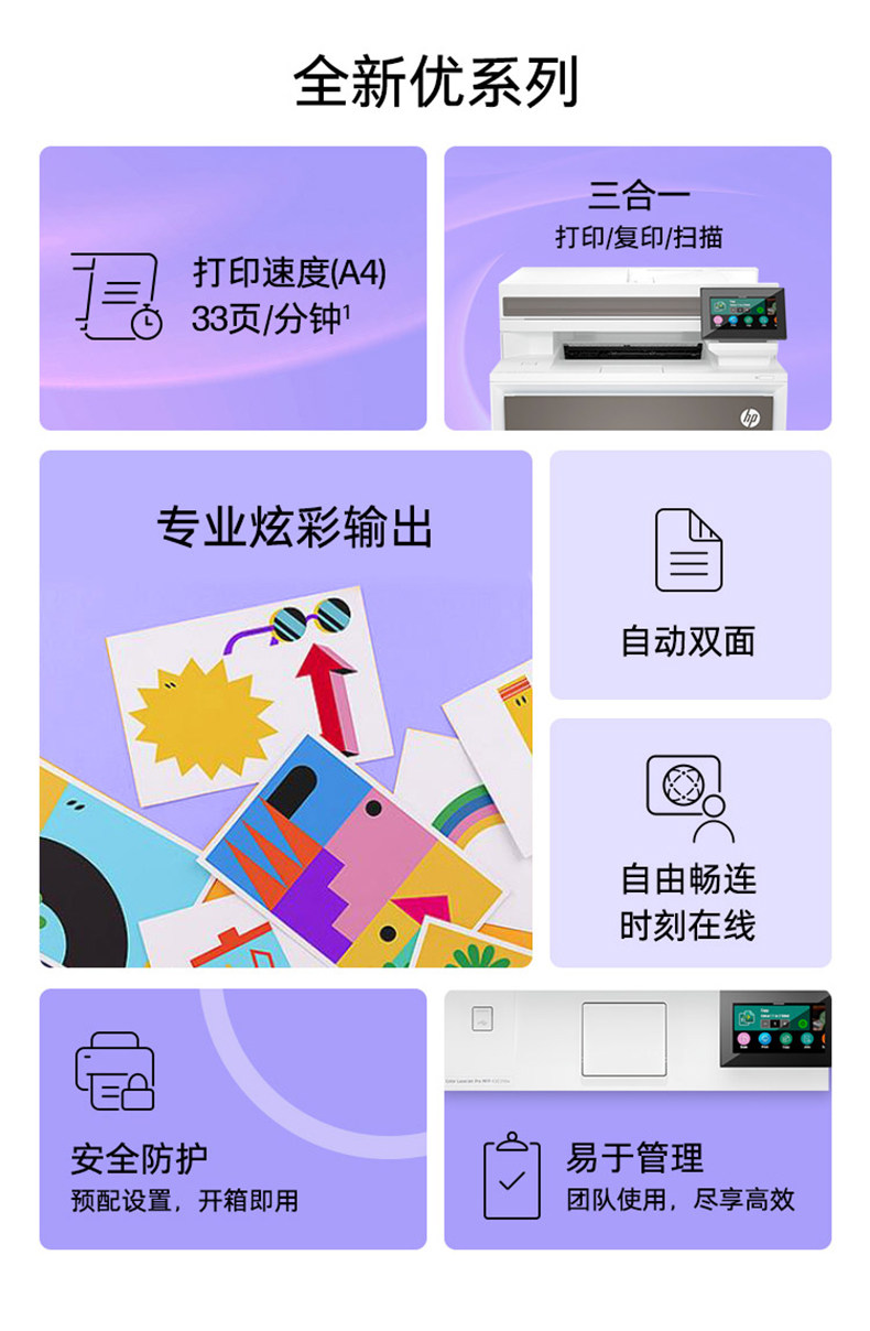 • 新品HP惠普4303dw彩色激光一体机a4打印复印扫描传真无线自动双面打印家用办公专用多功能M479fdw升级三合一